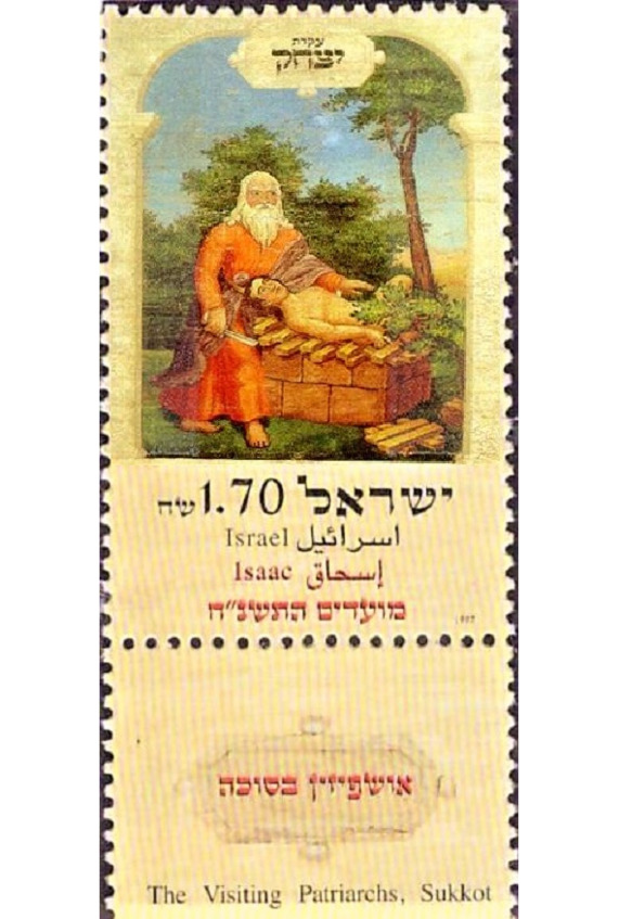 У 1997 годзе пошта Ізраілю выпусьціла сэрыю марак, прысьвечаных Патрыярхам і Сьвяту Суккот. На марцы бачым Ісаака і Арагама, які прыгатаваўся да выкананьня волі Божай. На што ж спадзяваўся Абрагам у такой страшнай сытуацыі? Ён спадзяваўся на Слова Божае, бо добра памятаў абяцаньне Госпада, што менавіта ад Ісаака адбудзецца вялікі народ. Што адбылося далей, вядома. Анёл адвёў Абрагамаву руку з нажом ад Ісаака і падаў для ахвярапрынашэньня барана.