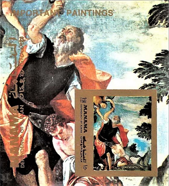 хвярапрынашэньне Ісаака (1588). Паолё Веранэзэ (1528—1588). Музэй Прада. Блёк Манамы, выдадзены ў 1972 годзе
