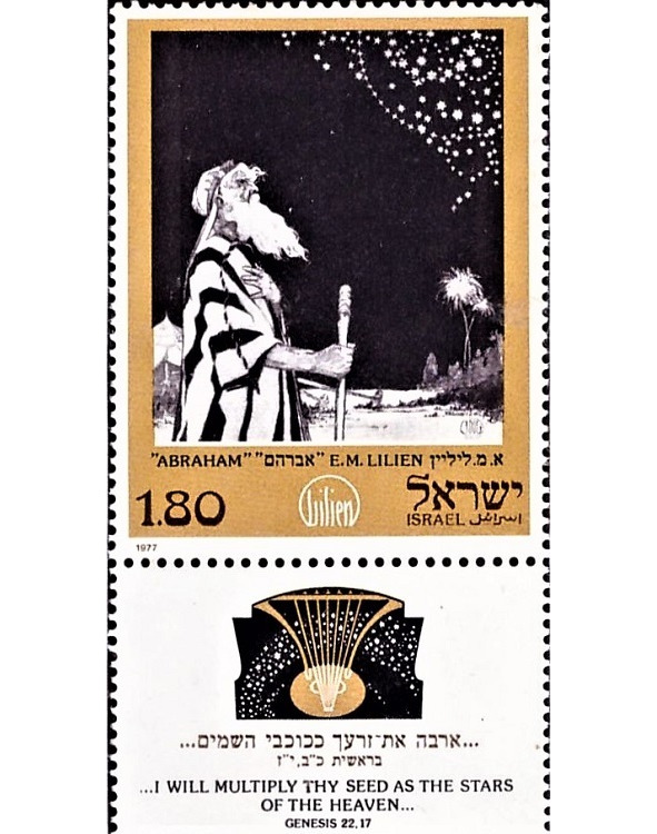 Узнагародаю за веру стала канчатковае пацьверджаньне абяцаньня патомства: «Я дабраслаўлю цябе і дам табе нашчадзтва такім шматлікім, як зоркі на небе і як пясок пясок на беразе мора» (Быцьцё 22:17). Ілюструе гэтыя словы марка Ізраіля. На карціне, намаляванай мастаком Эфраімам Мошэ Ліліенам, Абрагам заглядзеўся на зоркі – сымбаль мноства яго патомства. На прывесцы цытата з Бібліі на габрэйскай і ангельскай мовах: «…і дам табе нашчадзтва такім шматлікім, як зоркі на небе…» (Быцьцё 22:17).