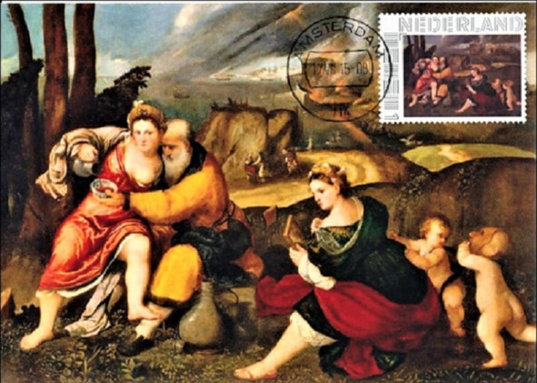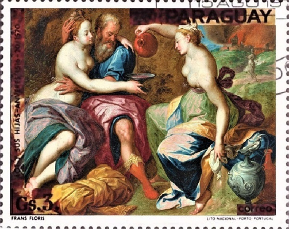 Лот і яго дачкі. Якаб Адрыянс Бэкер (1609 —1651). Марка пошты Парагваю, выдадзеная ў 1990 годзе