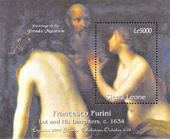 Лот і яго дачкі. Франчэска Фурыні (1603—1646). Прада. Мадрыд. Блёк пошты Сьера Леонэ, выдадзены ў 2000 годзе