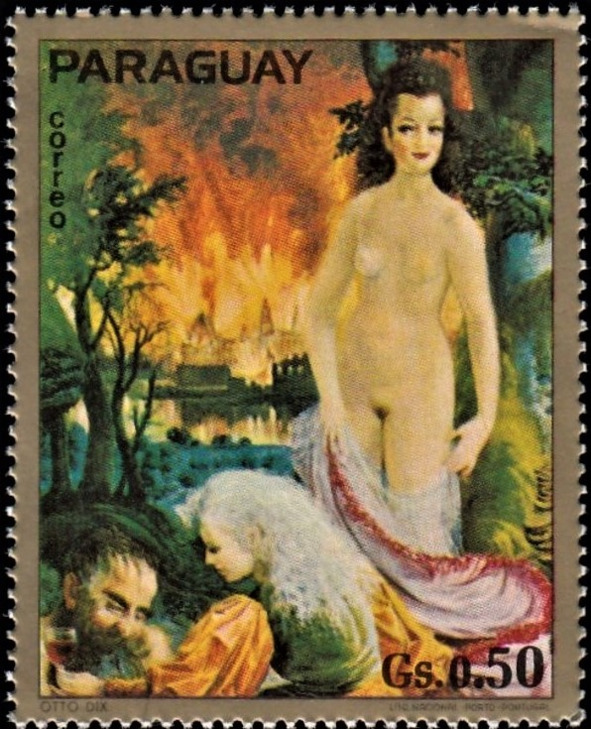 Лот і яго дачкі (1939). Ота Дыкс (1891—1969). Музэй Людвіга, Аахен, Германія. Марка пошты Парагваю, выдадзеная ў 1974 годзе