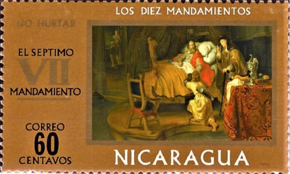 Ісаак Благаслаўляе Якава (1642). Гербранд ван дэн Экхаут (1621 – 1674). Музэй мастацтваў Метраполітэн, Нью-Ёрк. Марка пошты Нікарагуа, выдадзеная ў 1971 годзе
