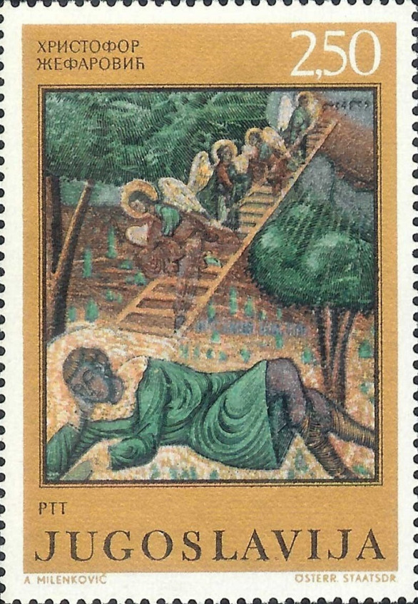 Лесвіца Якава (1737). Хрыстафор Жафаровіч (1710—1753) Кляштар Боджані. Марка пошты Югаславіі, выдадзеная ў 1970 годзе