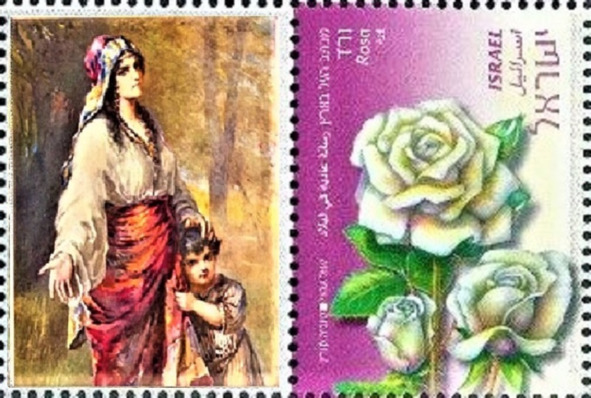 Рахель і маленькі Язэп. Ёханэс Адольф Тылак (1861—1948). Персанальная марка, выдадзеная поштай Ізраілю ў 2009 годзе