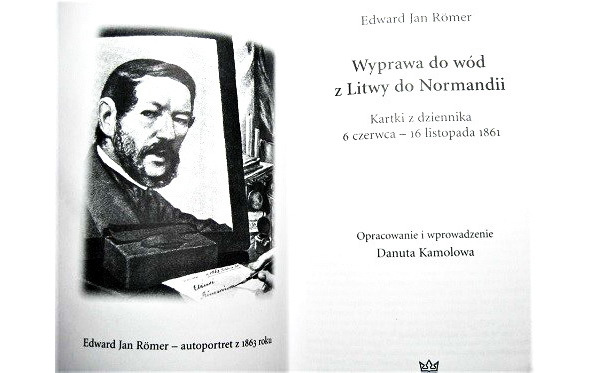 Аўтапартрэт Эдварда Яна Ромэра на вокладцы кніжкі яго аўтарства «Выправа на воды з Літвы да Нармандыі».