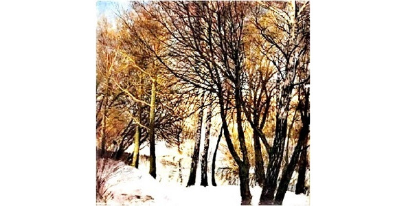 Зімовы пэйзаж. Праца Эдварда Матэуша Ромэра вельмі нагадвае прыроду і рачулку Лунянку каля палацу Ромэраў у Луне
