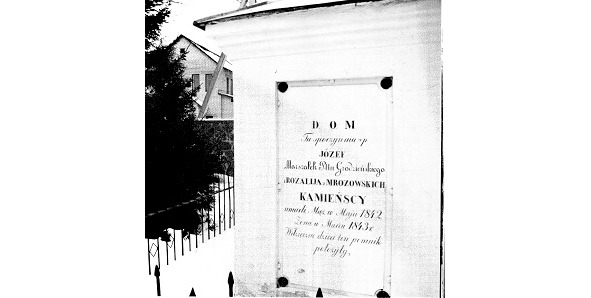 На другім пляне віднеюцца абрысы будынкаў палацавага комплексу Ромэраў.