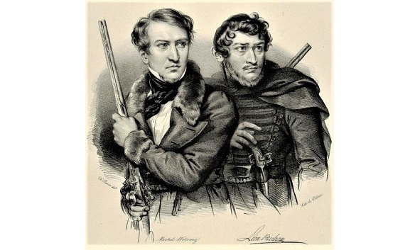 Паўстанцы Міхал Валовіч і Лявон Працлаўскі, гравюра XIX ст.