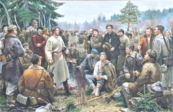 Кастусь Каліноўскі сярод паўстанцаў 1863 г. Карціна Пётры Сергіевіча