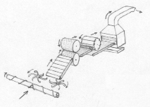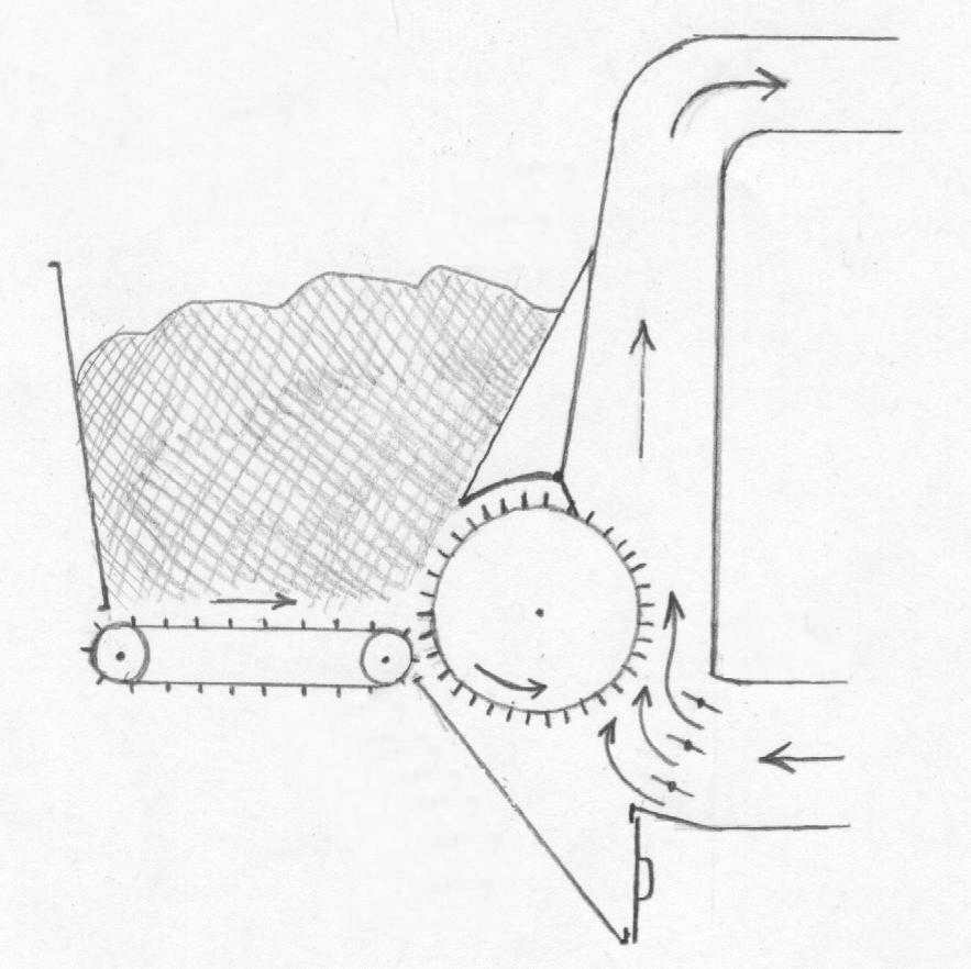 На левом рисунке можно рассмотреть установку примерной предварительной подготовки соломы: сначала солома плющится, затем рубится, после чего проходит воздушную сепарацию в потоке горячего воздуха (отделяются тяжёлые примеси, солома прогревается, в результате чего подсыхает и обеззараживается), насыпается в ёмкости для хранения.