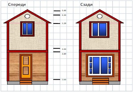 Фасад показывать не буду – он не параден: малюсенькое окошко для света в коридоре и скат крыши. Поэтому входная дверь выведена вбок. Заодно с улицы не будут заглядывать «кхто тама?». Зато с задней стороны – всеми любимый второй свет (полуторный, если честно), поскольку там, собственно, дача, в плане участок с мангалкой и гамаком. Выход – естественно французское окно с приставными окошками. Можно замутить и эркер – если руками, то по деньгам не столь накладно выйдет.