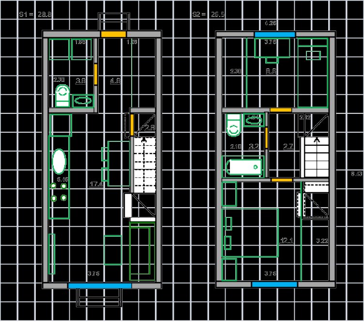 Сам дом легко вписывается в узкие участки, скажем, 10.5 м и уже в виде дуплексов или таунхаусов. Но это уже другая история.