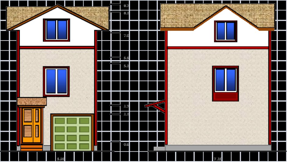 Начнем с первого. Скажу честно, это проект Квартер 79, у которого, как можно угадать по названию, кое-чего обрезали. В итоге получился сусликоподобный домик 5,4 Х 7,2 м по стандарту канадских таунхаусов начала века. Именно как «пока» и именно как не дорого. Впрочем, как квартира на сдачу он отлично группируется в дуплекс и квадриплекс, как и его больший предок. Фасад – парадный. А как иначе? Гараж, крыльцо, окна из зала и главной спальни, козырный торец крыши домиком, чтобы наледи на выходе и выезде не было. Если очень жалко, вместо гаража можно сделать просто нишу под машину на столбах – по деньгам проще, да и участок – Ваш, правда, ведь?