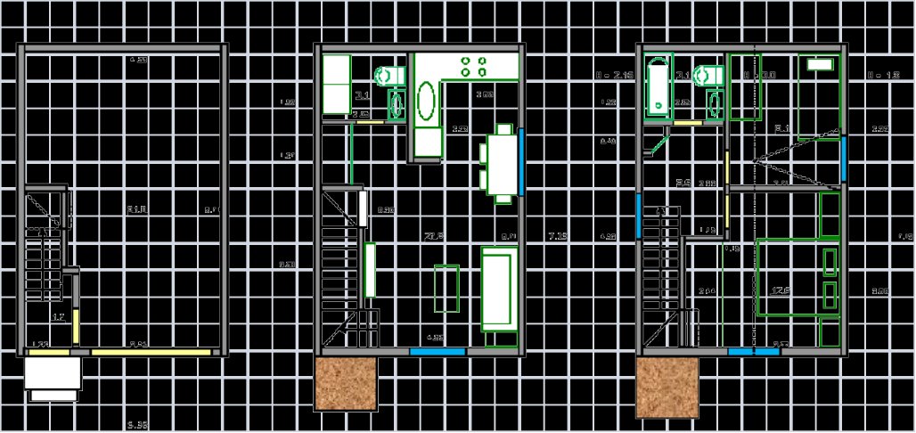 1. Если обратили внимание на план полов, то спальни стали больше, разделены, появилась почти выделенная прачечная, а кухне-зал стал адекватнее семейному времяприпровождению. Как и в оригинале, спереди и сзади можно вывести огражденные террасы, но пока от них отказался из соображений экономии. Но никогда не поздно вернуться для конкретного человека. Кстати, опять же из соображений экономии и улучшения теплоизоляционных свойств дома потолки в полуконтейнерах начинаются с 1,83 м и все, кроме как не под антресолями, косые. Зато в зале набегает до 3,5 м, что не может не радовать, особенно летними знойными вечерами. С отдушинами под коньком с обеих сторон. Шкафы – встроенные. С одной стороны, они уже есть и выступают силовыми элементами. А с другой не расшатывают своими ножками полы. И заметьте, в санузле нет окна. Если очень хочется, сделайте на антресоль – зачем тепло терять?