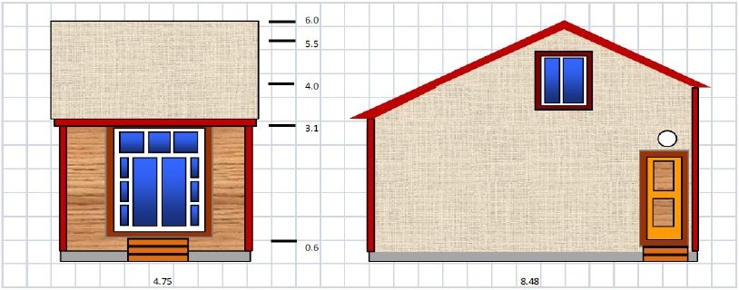 Собственно, что я уже упоминал, модуль именно выгодный в строительстве, поскольку рассчитан под материалы: лес распила 4 м под половые перекрытия, листы фанеры на пол, крышу и внешнюю отделку стен 1,22 Х 2,44 м и рулоны минеральной ваты шириной 58 см. Так что обрезков, собственно как и вырезов, будет не много.