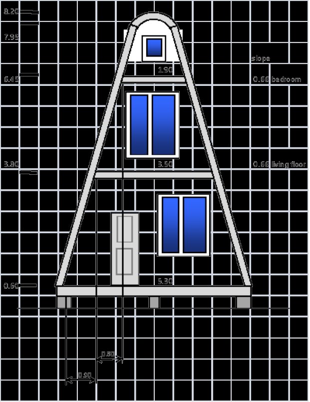 Как мы уже упоминали, крыша и фасад занимают до трети издержек на строительство, столько же внутренняя отделка и только остаток на фундамент и каркас. Только на совмещении стен и крыши, фасада и кое-какой кровли (дранка, например), получается 10 % экономия. Также можно сэкономить на тепло и звукоизоляции (по сравнению с Ку-Даблинг – минус пару слоев гипсокартона и минваты) – это же временное прибежище в глуши! К тому же за счет уменьшения объема работ сверху можно поймать следующие 10 % экономии. Фундамент – 12 столбов, или даже табуреток. Уходит фанера в обшивке стен: для крыши она не нужна, а под крышей – жесткий каркасный треугольник – еще меньше нужна. Двойные окна и двери – не нужны. Да и внутренних дверей – всего две. Ни гаража, ни парковки, ни выезда. Лучше он, конечно, не стал, но именно по назначению и затраты. Вот и посчитайте.