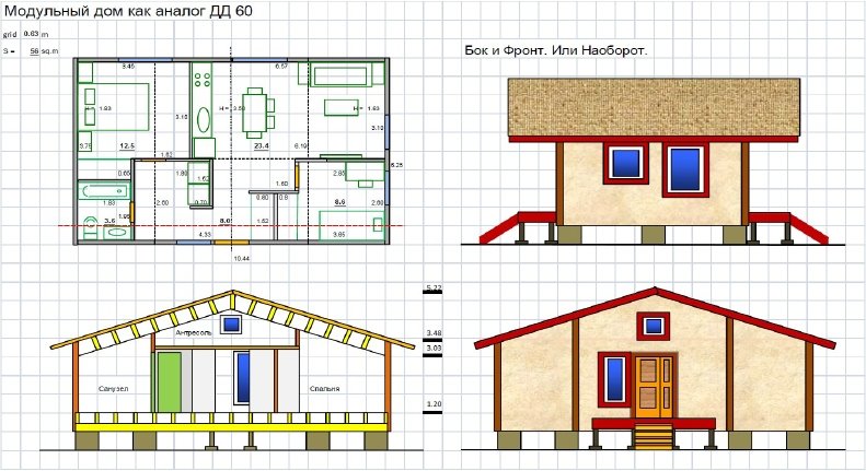 А теперь кому однозначно стоит задуматься, не скажу за ДД 46 (это откровенно дача, сторожка или выселки переростка), но 60 – это вполне могло бы получиться солидное жилье для невысоких людей, кому не помогут родственники ни в получении профессии, ни деньгами, ни натаскают на стройку или деньги. Вполне годится как первое жилье для вахтовиков, специалистов по призыву, выпускников интернатов, других обездоленных, скажем, детей многодетной семьи, всех мастей беженцев, погорельцев-подтопленцев и прочих лишенцев. Но опять же, почему не сопоставимые по качеству дешевые щитовые дома?