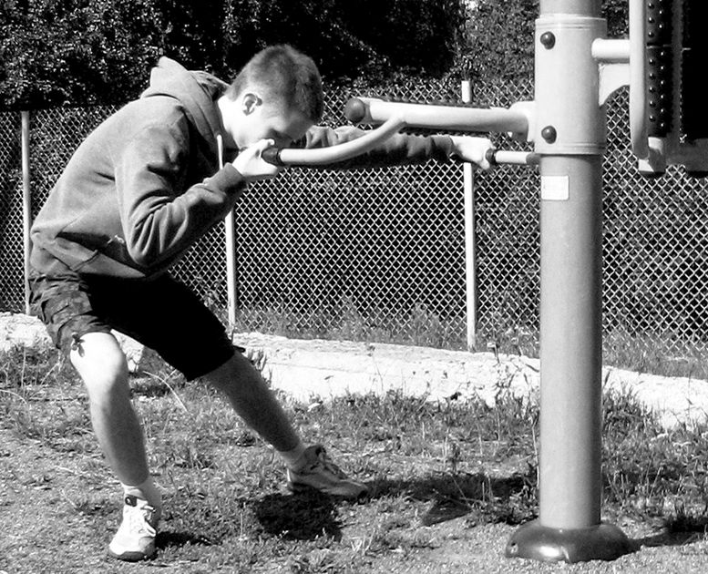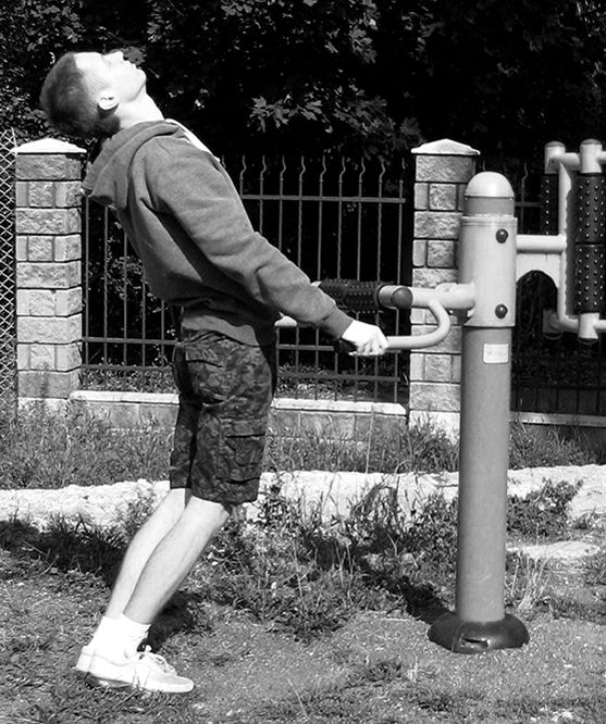 При выполнении прогиба руки остаются прямыми, колени не сгибать! Начните с наклонной опоры (наклоненного дерева, как на рис. 1.10), это создаст эффект микропрогиба.