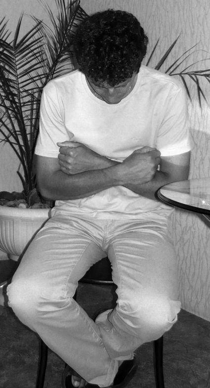 Исходное положение: сидя за столом в удобном положении – слегка сжатые в кулак руки прижаты к столу, локти разведены в стороны. Ноги прижаты к полу. Расслабить плечи, предплечья, локти, кисти (рис. 1.25).