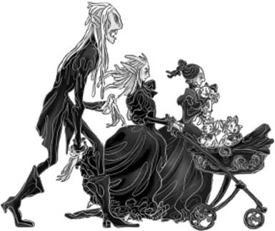 По спине Враны побежали мурашки, когда она увидела Брэма и Кэлли в карете, запряжённой лошадиными призраками с бриллиантовой сбруей. Сразу чувствовалось, какой властью обладают эти двое. Брэм, в чёрной шёлковой накидке с серебряными пуговицами, крепко держал вожжи, не сводя глаз с воронов и летучих мышей, парящих у него над головой. На Кэлли был серебристый плащ с застёжкой в форме ворона поверх серого крапчатого платья. Белая дама ухмыльнулась, когда Брэм выхватил из воздуха одного ворона и откусил ему голову. А потом бросил взгляд на Врану, стоявшую у окна спальни; с губ его капала кровь. Врана передёрнулась, схватилась за живот. Кэлли рассмеялась, сжала в кулак бело-серую ладонь.