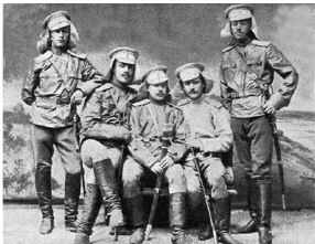 Волонтеры 52 Нежинского драгунского полка из Императорского училища правоведения: кн. Трубецкой, Аннибал (убит), Измайлов, Лонгинов, Романов