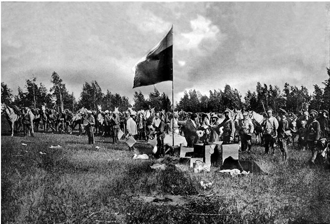 На фронте Владимир Уваров проявил себя смелым воином, за что и был удостоен двух солдатских Георгиевских крестов – 4-й и 3-й степеней. На его долю выпадет тяжкая обязанность: сопровождать в Мукден тело убитого однокашника – графа Кирилла Канкрина. И года не прошло, как друзья, сдав выпускные экзамены, вместе отправились в Елец, где сфотографировались рядом на память… Следует заметить, что в дальнейшем судьба Владимира Уварова будет тесно связана с полком. Когда разразится Первая мировая война, он, тогда уже председатель Новоград-Волынской уездной земской управы, отправится на фронт в составе Нежинцев (к тому времени полк станет именоваться 18-м гусарским). Не все документы военной поры сохранились. Тем не менее, из уцелевших приказов видно, что Владимир Уваров, будучи прапорщиком, в конце 1914 года смело сражался в Галиции, за что и получил два ордена – св. Станислава и св. Анны, оба 3-й степени с мечами и бантом. Был произведен в корнеты со старшинством с 5 декабря 1914 года (ВП от 4 апреля 1915 г.). По службе продвигался стремительно, словно наверстывая упущенное время, и к концу 1916 года он уже штаб-ротмистр. К наградам прибавился орден св. Равноапостольного князя Владимира 4-й степени с мечами и бантом, а также Св. Станислава 2-й степени с мечами. В феврале 1917 года он числился в 1-м эскадроне прошедшего переформирование полка. При этом он часто подменял командиров 2-го и 3-го эскадронов во время их болезни или отсутствия. Вот таким оказался этот скромный паренек с фотографии.