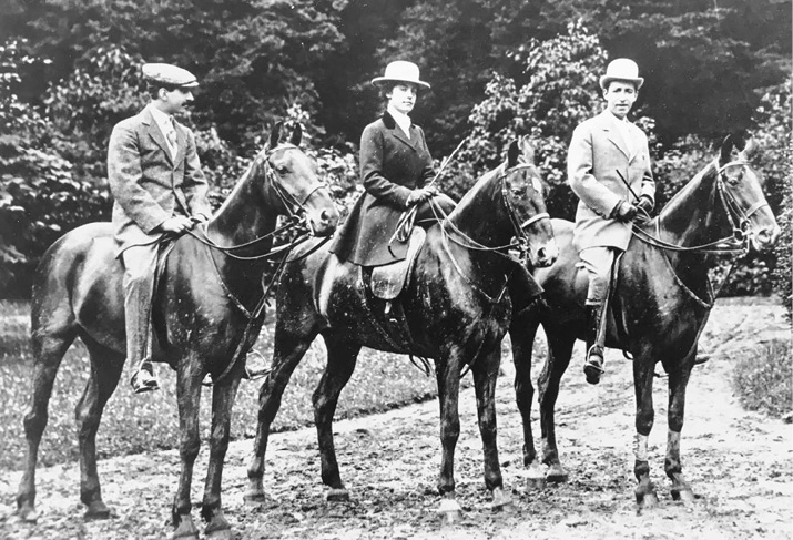 Пьер (справа) и Эльма (в центре) на прогулке в Булонском лесу напротив их парижского дома. Иногда к ним присоединялся младший брат Пьера Жак (слева)