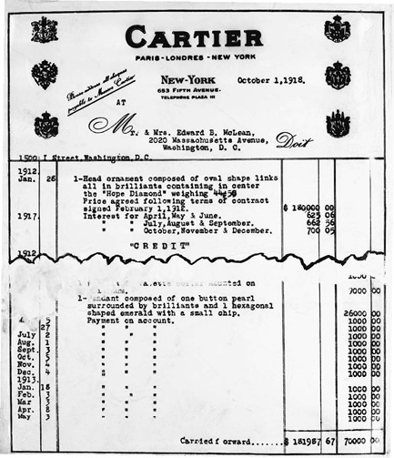 На следующий день Пьер получил известие, что Маклины купят «Хоуп». Цена составляла 180 000 долларов США (около $5 миллионов сегодня), первый взнос – 40 000. Картье вздохнули с облегчением. Но процесс продажи не был простым. Через несколько недель после того, как контракт был подписан и Маклины завладели драгоценным камнем, Пьер еще не получил ни цента в качестве оплаты. По просьбе клиентов он даже включил в контракт оговорку, чтобы смягчить их страхи, связанные с проклятием («привилегия покупателя обмениваться товарами в случае гибели»), но Эвалин все равно откладывала оплату. Однажды она попыталась отправить «Хоуп» обратно в Cartier. Пьер отказался принять его: ожерелье было возвращено владельцу вместе с повторным требованием оплаты. К марту 1911 года, через два месяца после того, как была достигнута договоренность о продаже, после бесконечной череды задержек, братья Картье подали на Маклинов в суд. Пьер, всегда крайне осмотрительный, отказывался говорить с прессой. Газета The New York Times сообщила, что «похоже, были предприняты крайние меры предосторожности, чтобы защитить г-на Картье от нежданных посетителей».