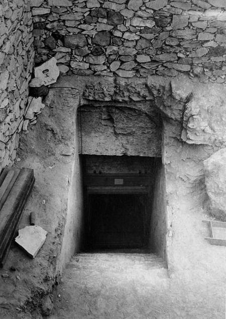 Следующий день, двадцать шестое ноября, стал днем из всех дней, самым чудесным днем моей жизни. Подобного ему я наверняка больше не увижу. С утра продолжалась расчистка галереи. Работа шла медленно из-за всяких хрупких предметов, попадавшихся в завале. Но вот во второй половине дня, когда мы по наклонной галерее удалились от внешней двери на 10 метров, перед нами оказался второй, замурованный и запечатанный вход, в точности повторявший первый. Лишь оттиски печатей здесь были менее отчетливы, но все равно среди них можно было различить печать Тутанхамона и печать царского некрополя. И здесь так же ясно на штукатурке остались следы взлома и последующей замуровки.