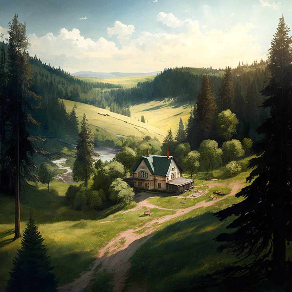 Неизвестная поляна. Солнечный день. Со всех сторон виднеется смешанный лес, рядом стоит одинокий дом, из окошка которого доносится приятный запах свежей выпечки. На поляне раскинулся ковер из ярких цветов, оживленный насекомыми. Воздух пропитан ароматом деревьев и травы, а пение птиц соткано в спокойную мелодию. На горизонте виднеется горный хребет, его вершины укрываются белыми облаками. В этот прекрасный день поляна кажется настоящим уголком рая, где можно забыть обо всех заботах и просто наслаждаться красотой и покоем природы. Легкий прохладный ветерок играет с травой и листвой деревьев. Вдалеке, на поляне можно заметить юношу и его сестру, которые играют в догонялки.