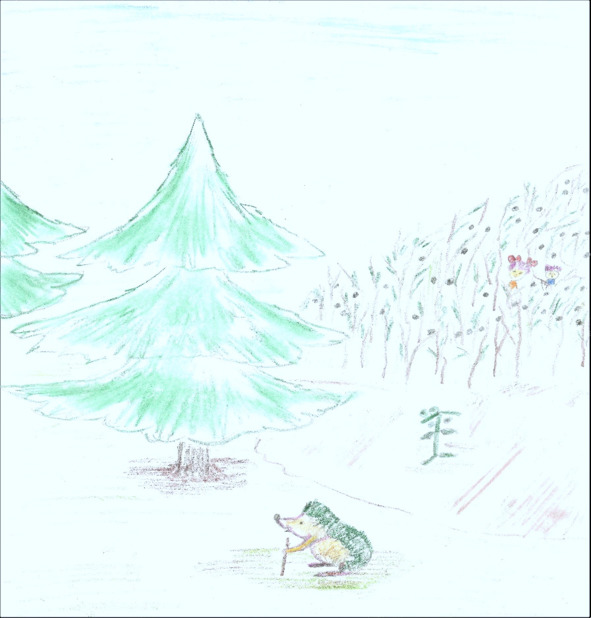 Дети подошли к зверькам и стали угощать их лакомством, следя за тем, чтобы всем досталось поровну. Когда еноты и ежи съели по последней ягодке, попрошайки помахали братику и сестричке передними лапками и исчезли в еловом лесу. После этого Айя и Дай пошли по тропинке вдоль холма и наткнулись ещё на одну табличку. Девочка прочитала: «Если вы пойдёте налево, попадёте в еловую чащу. Если пойдёте направо, попадёте во дворец на праздник».