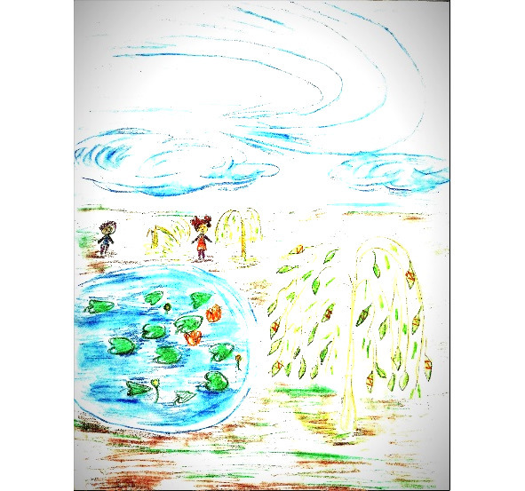 – Мы живём в прекрасной стране. Нашими домиками являются листочки ивы. Когда идёт дождь, мы прячемся под ними, а когда светит солнце, перебираемся наверх. Ив в нашей стране много. Общаться между собой нам помогает прекрасная птица иволга, которая летает от ивы к иве и разносит важную для нас информацию.