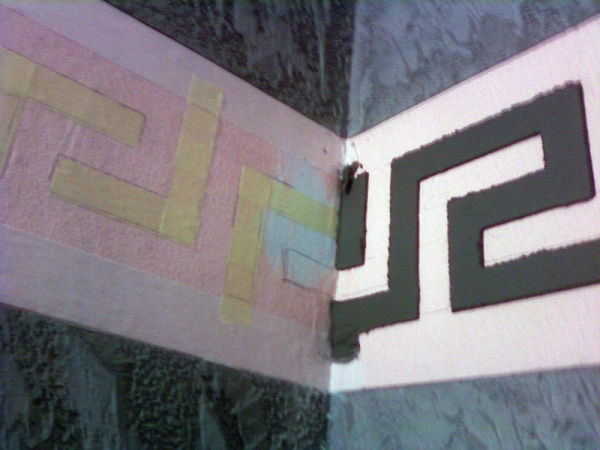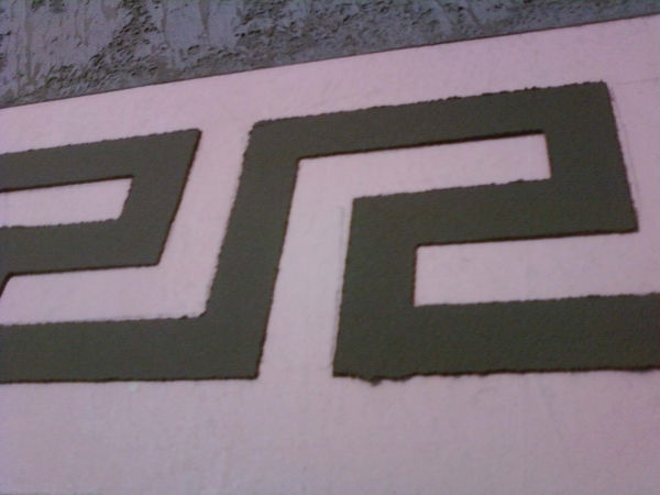Затем с помощью той же самоклеющейся бумажной ленты ограничиваем место для орнамента – по намеченному и расчерченному с помощью карандаша и линейки рисунку наносим цементный слой. Это шаг иллюстрирует рис. 1.4.