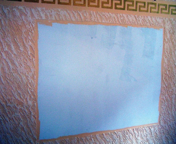 А картину за него выполнила российско-украинская легкая промышленность, производящая специальные выпуклые (рифленые) «фрески» на бумажной основе. Но все по порядку, об этом чуть позже. А пока важно заметить, что еще при нанесении цементного состава на стену на ней необходимо выделить «окно» для будущего произведения искусства (см. рис. 1.10).