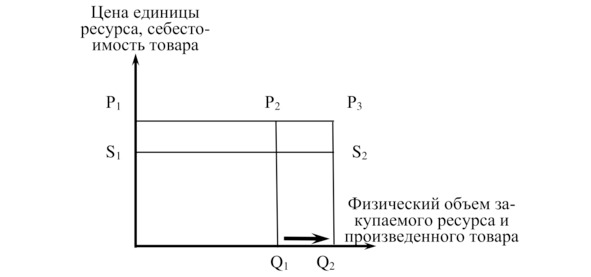 Рис. 3.5. Структура стоимости совокупной продукции в разрезе предприятий (на рисунке линия АЕА – цена реализации произведенной предприятиями продукции; линия ВЕВ – ее цена производства, или экономические издержки) 1 2 1 2