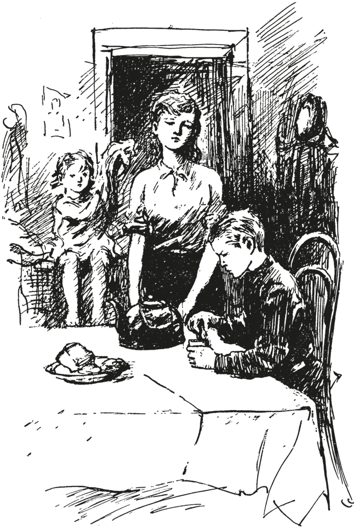 Капка промолчал. Он налил в кружку кипятку и стал сердито макать туда пригорелый сухарь. Маленькая Нюшка, торопясь, напяливала на себя платьице, путалась в рукавах, никак не могла выпростать голову и, зная, что брат спешит уйти, тыкалась изнутри в материю, лезла с вопросами: