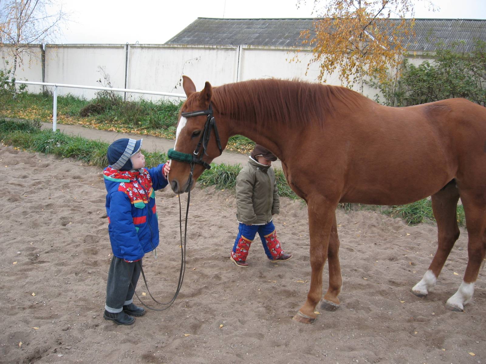Тогда же к нам впервые приехала в гости мама из детской деревни с детьми-сиротами. Им очень нравилось общаться с Рыжулиным. Да и общий язык с ним они нашли моментально. Было классно. У людей, которые совсем не конники – поразительное чувство лошади, такое бережное отношение, какое нечасто встретишь. А Рыжуль… Он вообще был молодец и умничка, так бережно ходил рядом с детенками (младшей из которых было на тот момент всего 3 года!), давал ножки, даже кранч изобразил. Был напичкан яблоками, сушками и морковкой.