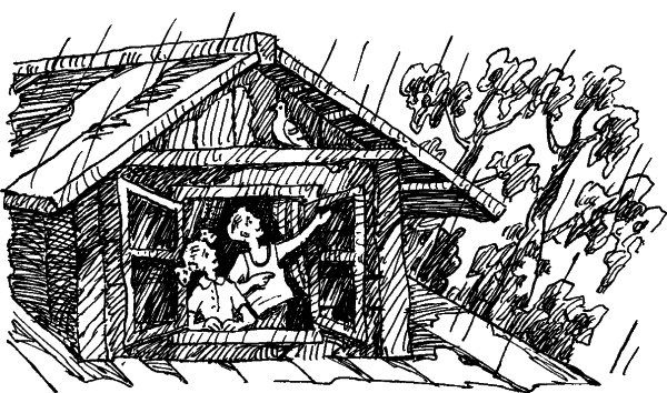 Тут дождь пошел еще сильнее, сверкнула молния, загремел гром. Пришла мама, закрыла окно и велела детям есть простоквашу, а потом ложиться спать.