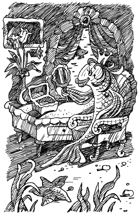 – Ваше высочество! – сказала она, протягивая к нему с мольбою один плавник, так как другой был уже давно парализован жемчужиной. – Я ждала вас всю жизнь. И вот вы пришли. Я знаю, в обществе не принято, чтобы молоденькая девушка делала первый шаг. Но я его делаю потому, что вы прекрасны, и потому, что я люблю вас.