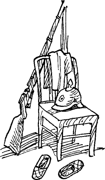 Сначала Шурка возился с винтовкой дома. Он переворачивал стулья, устанавливал на них тяжелое ружье, что должно было изображать пушку, и громко кричал: