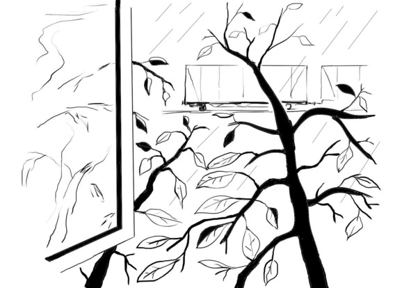 Вздрагивают листья от ударовСеро-беспросветного дождяМежду рам, распахнутых наружу,Реющих на петельных гвоздях.Тянет свежим холодом из сада,Комната, наполненная им,Порождает неподвижность взглядаИ снимает мышечный зажим.Вздрагивают листья от ударовСеро-беспросветного дождя.Мокрым, крашеным металлом замерВ тупике вагонный порожняк.24 июня 1986