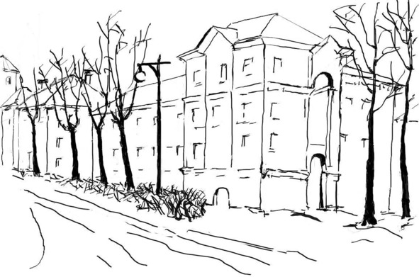 Две улицы, заржавленные шпаги,Скрестились в площадь, и давно осела пыль,Лишь две афиши, брошенные стяги,С тоской глядят на проходной пустырь.Застывшую сто лет назад картинуВенчает белый дом прямым углом,Один этаж в земле наполовину,Высоких окон стройность во втором.И взгляд плывёт по низким перспективамНад серостью построек и дворов,Встречаясь вдалеке с неторопливымИ строгим взглядом древних мастеров.31 июля 1986Окраина