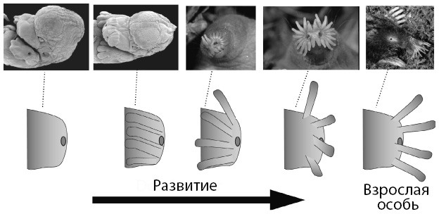 Эти два основных механизма – отращивание нужной формы и формирование ее за счет удаления материала – кажутся в высшей степени удобными и логичными, и именно так у большинства животных развиваются конечности и отростки. Опять же, как еще? Казалось бы, все разумные варианты исчерпаны. Однако звездоносы пошли своим путем.