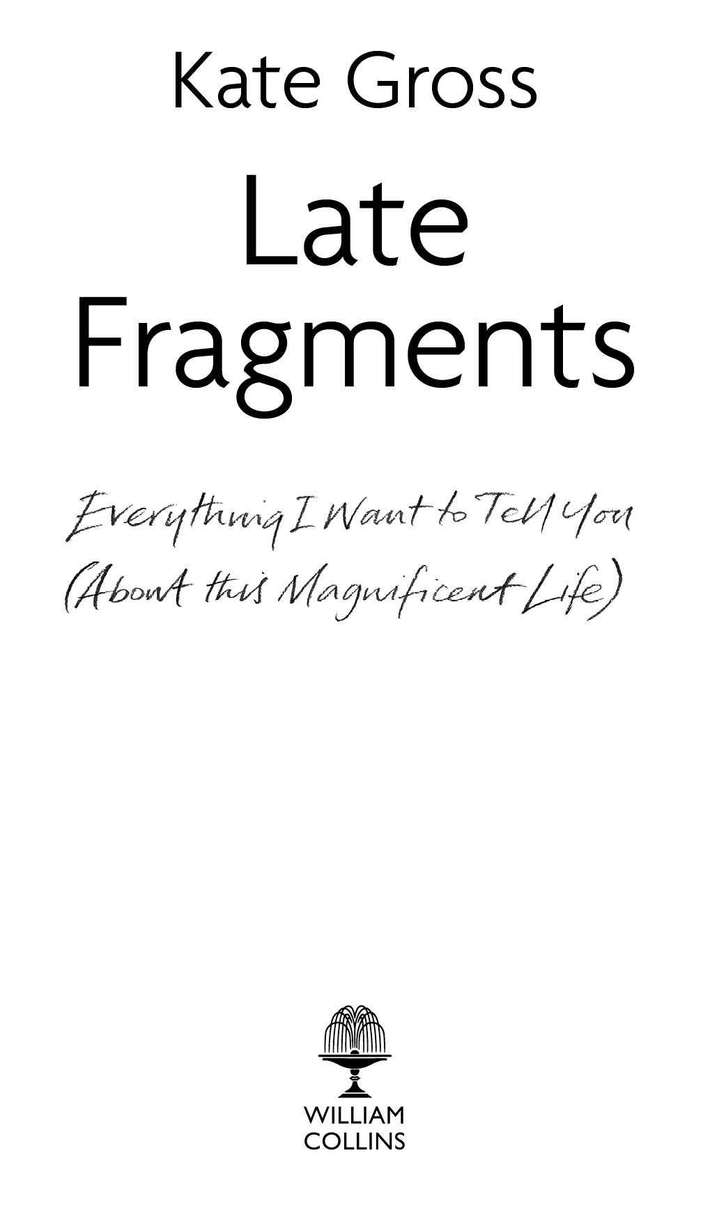 I began to write straight after my diagnosis. And as soon as I started to type, the words emerged, as prolific at reproducing and ordering themselves as the malignant cells inside me. Everything I wrote was a gift to myself, a reminder that I could create even as my body tried to self-destruct. And I wrote as a gift to those I love: my living, breathing Terracotta Army. Now the words spill out of my plastic bag like the magnetic letters my children stick on the fridge. I write to make sense of what has happened to our family, to make sense of the Kate who has emerged in this strange, lucid final chunk of life. I write because the imprint of disease is growing in me, and like a poor man’s Keats I find myself full of fears that I will have to stop ‘before my pen has glean’d my teeming brain’. Before I can write down all the things I want to tell my boys when they are thirty-five, not five. Before I can tell them who I am, and what I know, and the stories that make up my life.