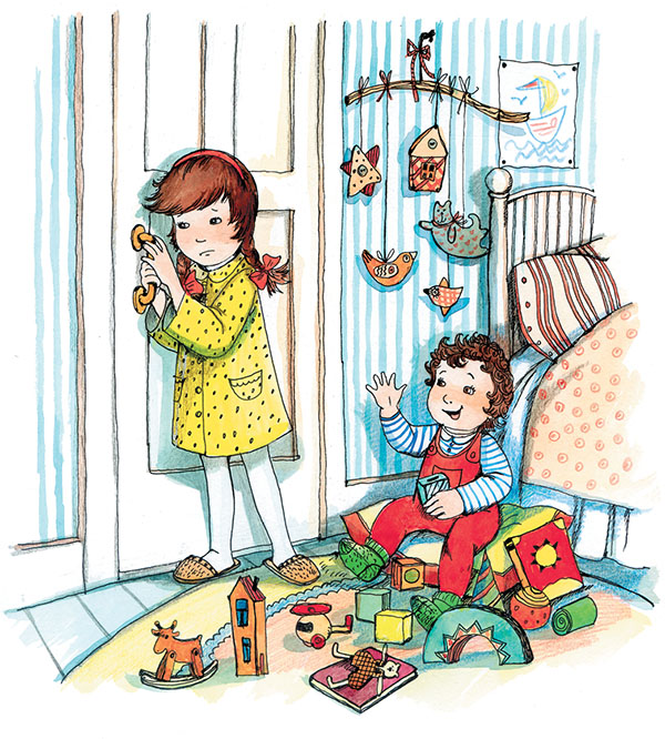 – Хорошо, – сказала Аврора. Она принесла в спальню из своей комнаты Пуфика и три автомобильчика, а из кроватки Сократа взяла Малрулю и усадила её на пол рядом с Пуфиком. Папа тоже принёс туда красные, зелёные и жёлтые кубики.
