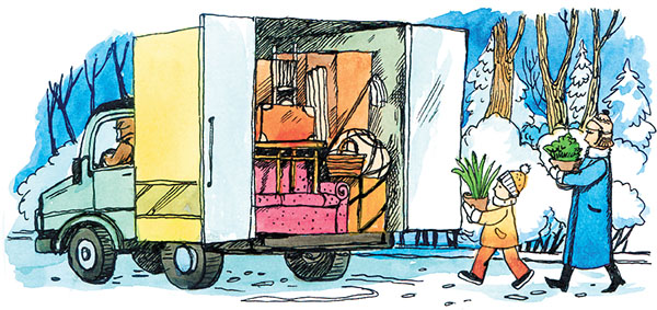Они спрятали ключ в условленном месте и ушли. Сначала Сократ с дядей Бранде осмотрели грузовик, ведь он был такой большой. Но потом Сократ потянул санки в сторону, и дядя Бранде, кивнув Авроре, поспешил за ним. Большой грузовик был почти заполнен, и, когда в него поставили последний стул, из корпуса вышли Бритт-Карен с мамой. Каждая из них несла по горшку с цветком. За ними вышла Нюсси. Она несла сразу два горшка с цветами. Казалось, что переезжает именно она. Но это была неправда. Она провожала других до легковой машины, стоявшей перед грузовиком.