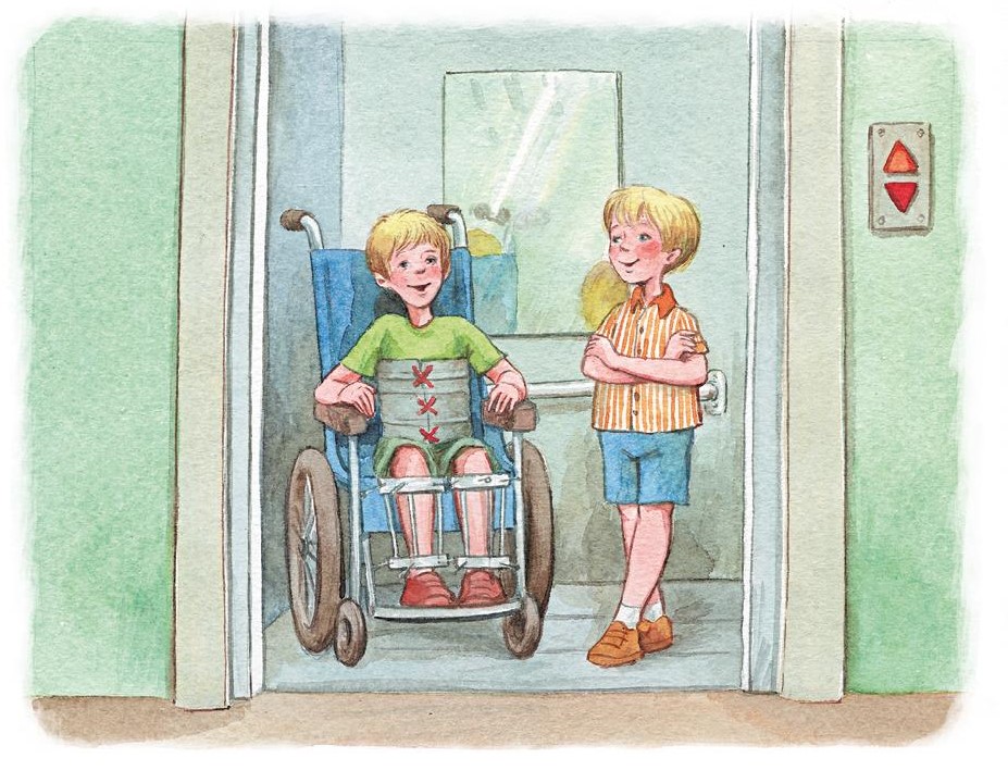 Они поднялись по лестнице на третий этаж и оказались в длинном коридоре. Здесь было много людей. Одни ковыляли на костылях, у других были ходунки, двое сидели в инвалидных креслах. Некоторые ходили нормально, и непохоже было, что у них что-то болит, но они тоже были пациентами, раз очутились тут. Пахло больницей, но это и была больница. В коридоре никто не соблюдал тишину: люди разговаривали, смеялись и даже кричали иногда.