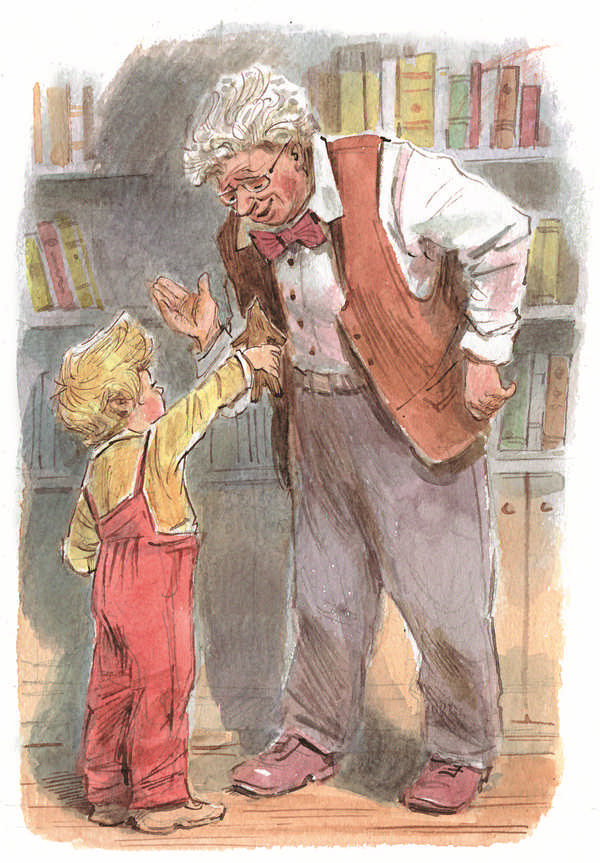 Малыш обернулся и увидел мужчину в очках и с копной белых кудрявых волос. Это был хозяин магазина.