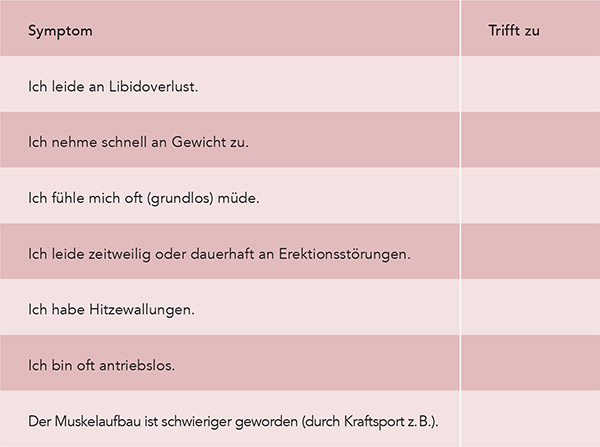 Testen Sie doch einmal anhand unseres Fragebogens, ob Sie von einem Testosteronmangel betroffen sein könnten: